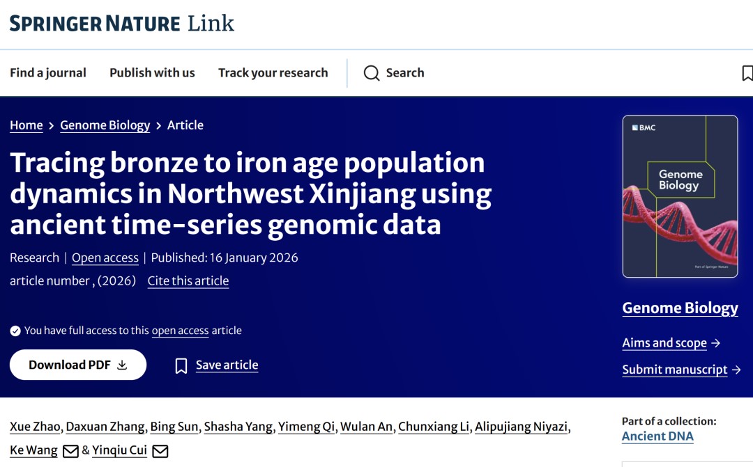 现代人类学教育部重点实验室王轲研究员团队利用古DNA技术,重建了新疆西北部那仁苏遗址人群长达2500年的连续遗传演化动态。该研究成果以“Tracing bronze to iron age population dynamics in Northwest Xinjiang using ancient time-series genomic data”为题,在国际权威学术期刊《Genome Biology》上发表。澳门六合彩开奖