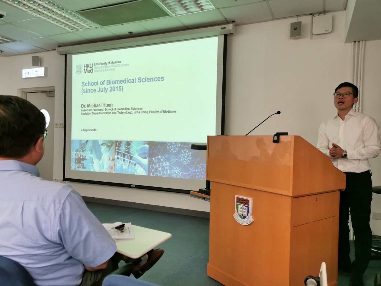 此次学术交流活动在香港大学李嘉诚医学院蒙民伟楼举行,包含学术报告会、深入科研实验室及文化参访等内容。活动开始前,香港大学生物医学院院长陈振胜教授和陈志伟教授分别以中英文致欢迎辞。活动期间,来自香港大学生物医学院、公共卫生学院、新发传染性疾病国家重点实验室、微生物系、临床肿瘤学系以及外科系的陈志伟教授、金冬雁教授、黄建东教授、HUAN Michael Shing Yan副教授、朱华晨副教授、KOK Raven助理教授、NG Kevin TP助理教授、DAI Wei助理教授、MOK Bobo助理教授等资深教授和青年学者分别为同学们开展了不同专题的学术讲座,并详细介绍了自身研究方向,与同学们分享科研成果,同学们也就各自感兴趣的科研问题与各位老师进行了积极的交流。