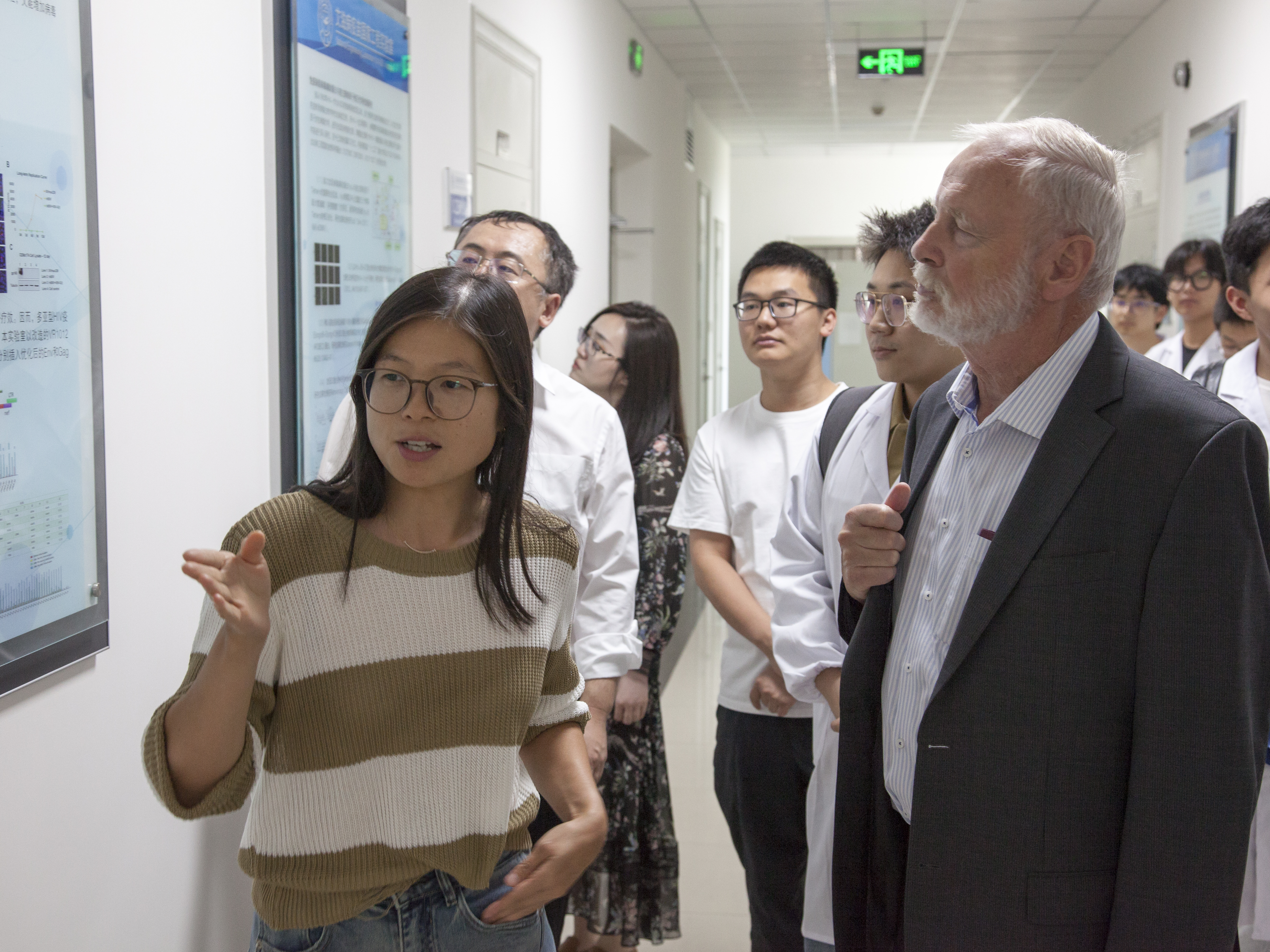 座谈会后,哈特穆特·米歇尔教授分别参观了分子酶学工程教育部重点实验室、艾滋病疫苗国家工程实验室和实验动物中心。分子酶学工程教育部重点实验室主任李全顺、艾滋病疫苗国家工程实验室教授吴慧和实验动物中心研究员王德利分别进行了细致讲解,就学院实验室科研进展、实验室建设、实验教学特点等方面与米歇尔教授进行交流与探讨。