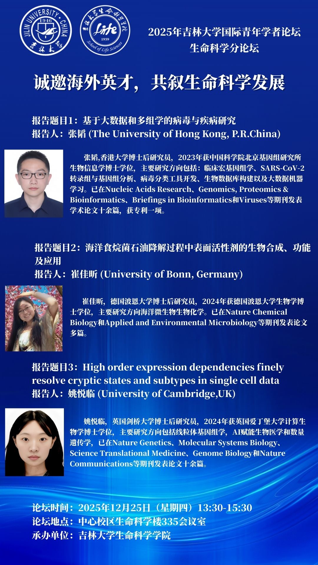 诚邀海外英才,共叙生命科学发展——澳门六合彩开奖 国际青年学者论坛生命科学分论坛